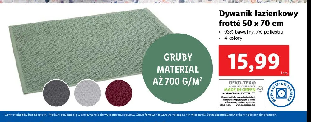 Cena produktu r贸偶ni si臋 w zale偶no艣ci od wybranego sklepu. Produkt Dywan 艂azienkowy 50 x 70 cm mo偶esz kupi膰 w promocji ju偶 od 49,99 z艂. Najta艅sza oferta, jak膮 mamy w naszej bazie jest z sieci Biedronka. Dywan 艂azienkowy 50 x 70 cm kosztuje aktualnie 49,99 z艂. Zobacz ofert臋