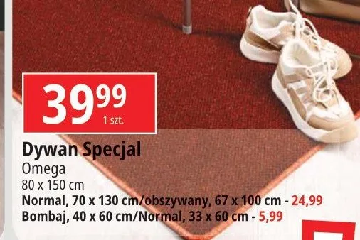 Zastanawiasz si臋, gdzie kupi膰 i ile kosztuje produkt Dywan obszywany 67 x 100 cm Omega? Regularnie sprawdzamy, czy jest promocja na ten produkt w Biedronka, Lidl, Kaufland, Auchan, Netto, Makro i innych sklepach. Aktualnie nie posiadamy ofert promocyjnych na ten produkt.