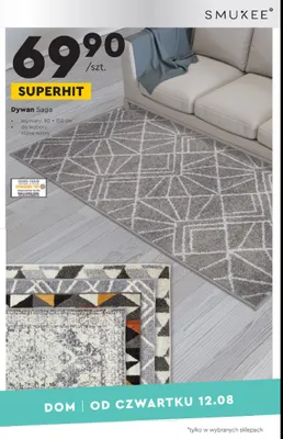 Zastanawiasz si臋, gdzie kupi膰 i ile kosztuje produkt Dywan saga 80 x 150 cm Smukee? Regularnie sprawdzamy, czy jest promocja na ten produkt w Biedronka, Lidl, Kaufland, Auchan, Netto, Makro i innych sklepach. Aktualnie nie posiadamy ofert promocyjnych na ten produkt.
