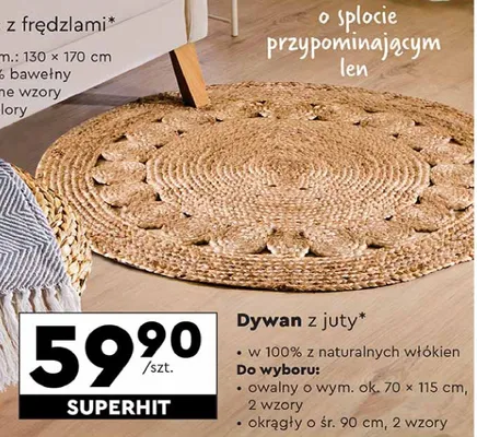 Nie wiesz gdzie kupi膰 produkt Dywan z juty 70 x 115 cm Smukee w promocji? Aktualnie produkt Dywan z juty 70 x 115 cm Smukee znajduje si臋 w atrakcyjnej cenie w sklepach Biedronka. Opr贸cz tego produkt mo偶na kupi膰 w innych sklepach, jednak aktulanie nie posiadamy informacji o promocjach w nich.