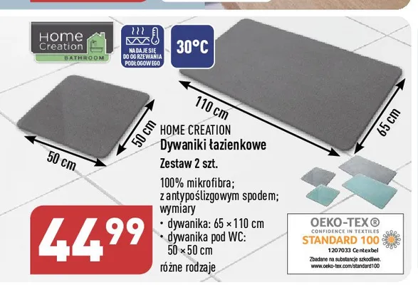 Dywanik 艂azienkowy 65 x 110 cm + dywanik pod wc 50 x 50 cm Home creation promocje w sklepach - znajd藕 ofert臋 dla siebie!