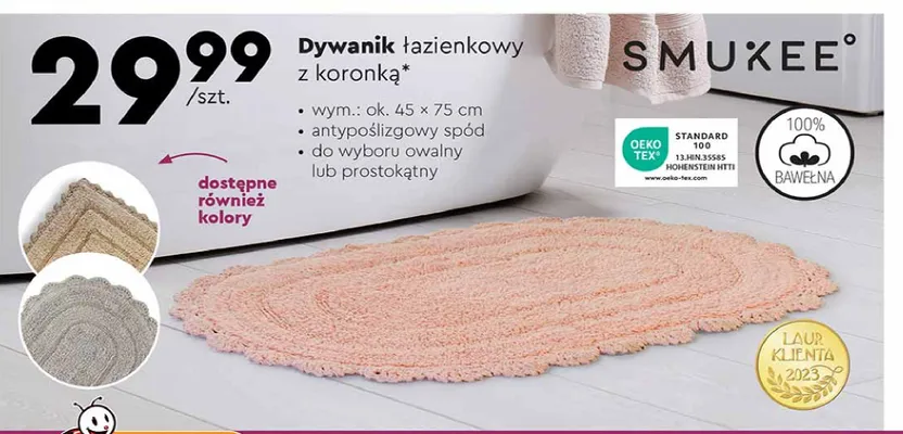 Przegl膮daj podobne oferty promocyjne do Dywanik 艂azienkowy z koronk膮 45 x 75 cm Smukee!