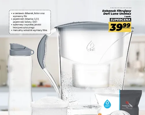 Przegl膮daj podobne oferty promocyjne do Dzbanek filtruj膮cy luna 3.3 l + filtr mg + bidon 0.7 l Dafi!