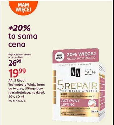 Przegl膮daj podobne oferty promocyjne do Dzienny krem silnie uj臋drniaj膮cy 50+ aktywny lifting Aa technologia wieku 5repair!
