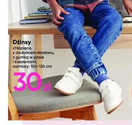 Cena produktu różni się w zależności od wybranego sklepu. Niestety nie posiadamy danych o aktualnych promocjach, jednak wśród archiwalnych ofert Dżinsy chłopięce 104-134 cm kosztuje od 20 zł do 30 zł.