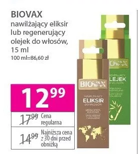 Cena produktu różni się w zależności od wybranego sklepu. Niestety nie posiadamy danych o aktualnych promocjach, jednak wśród archiwalnych ofert Eliksir nawilżający BIOVAX NATURALNE OLEJE kosztuje od 12,99 zł.
