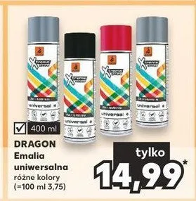 Cena produktu r贸偶ni si臋 w zale偶no艣ci od wybranego sklepu. Niestety nie posiadamy danych o aktualnych promocjach, jednak w艣r贸d archiwalnych ofert Emalia uniwersalna czarna Dragon chemia kosztuje od 14,99 z艂.
