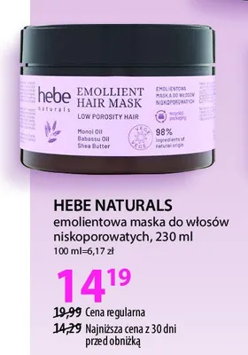 Ile kosztuje Emolientowa maska do w艂os贸w niskoporowatych HEBE NATURALS?