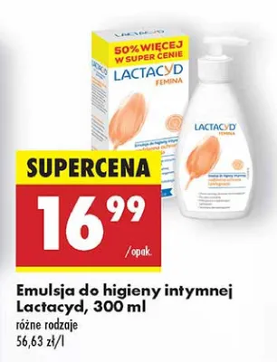 Cena produktu r贸偶ni si臋 w zale偶no艣ci od wybranego sklepu. Niestety nie posiadamy danych o aktualnych promocjach, jednak w艣r贸d archiwalnych ofert Emulsja do higieny intymnej Lactacyd femina kosztuje od 16,99 z艂.