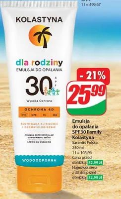 Przegl膮daj podobne oferty promocyjne do Emulsja do opalania spf 30 Kolastyna family!