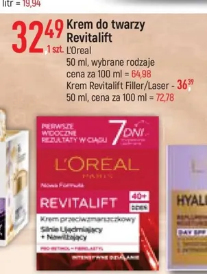 Ile kosztuje Energetyzuj膮cy czerwony krem do twarzy na dzie艅 40+ L'oreal revitalift?
