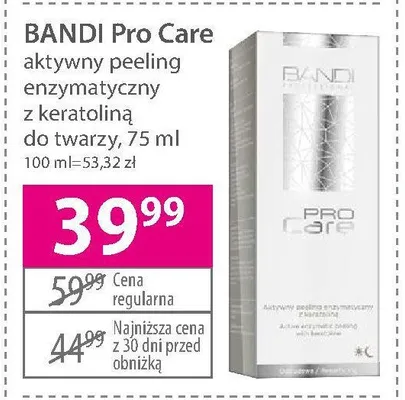 Cena produktu r贸偶ni si臋 w zale偶no艣ci od wybranego sklepu. Niestety nie posiadamy danych o aktualnych promocjach, jednak w艣r贸d archiwalnych ofert Enzymatyczny peeling do twarzy Bandi kosztuje od 24,99 z艂 do 54,99 z艂.