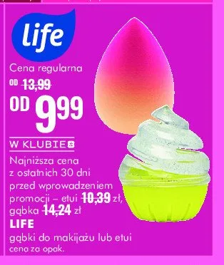 Cena produktu różni się w zależności od wybranego sklepu. Niestety nie posiadamy danych o aktualnych promocjach, jednak wśród archiwalnych ofert Etui na gąbkę do makijażu Life (super-pharm) kosztuje od 9,99 zł.