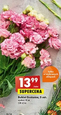Cena produktu r贸偶ni si臋 w zale偶no艣ci od wybranego sklepu. Niestety nie posiadamy danych o aktualnych promocjach, jednak w艣r贸d archiwalnych ofert Eustoma wys. 50 cm kosztuje od 12,99 z艂 do 13,99 z艂.