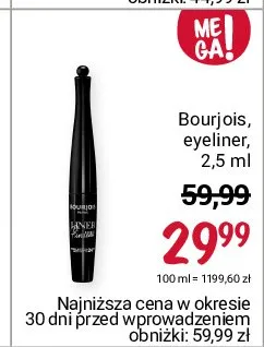 Cena produktu r贸偶ni si臋 w zale偶no艣ci od wybranego sklepu. Niestety nie posiadamy danych o aktualnych promocjach, jednak w艣r贸d archiwalnych ofert Eyeliner BOURJOIS LINER PINCEAU ULTRA BLACK kosztuje od 29,99 z艂.