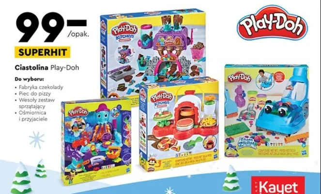 Cena produktu r贸偶ni si臋 w zale偶no艣ci od wybranego sklepu. Niestety nie posiadamy danych o aktualnych promocjach, jednak w艣r贸d archiwalnych ofert Fabryka czekolady Play-doh kosztuje od 99 z艂 do 129 z艂.