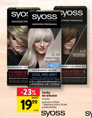 Przegl膮daj podobne oferty promocyjne do Farba do w艂os贸w 4-8 czekoladowy br膮z Syoss professional performance!