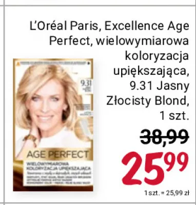 Ile kosztuje Farba koloryzuj膮ca 9.31 jasny z艂ocisty blond L'oreal age perfect?
