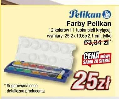 Cena produktu r贸偶ni si臋 w zale偶no艣ci od wybranego sklepu. Niestety nie posiadamy danych o aktualnych promocjach, jednak w艣r贸d archiwalnych ofert Farby akwarelowe Pelikan kosztuje od 25 z艂.