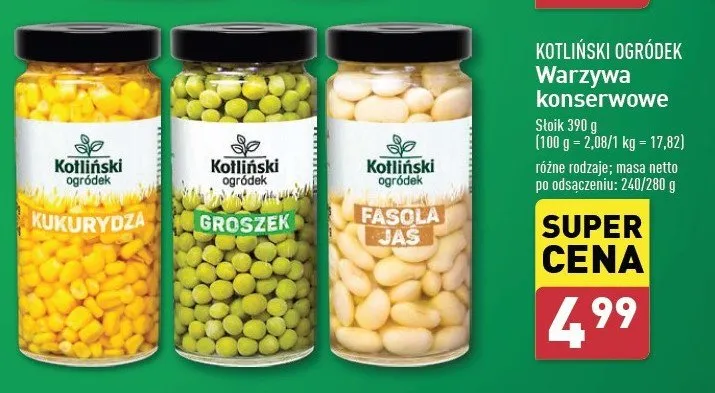Cena produktu różni się w zależności od wybranego sklepu. Niestety nie posiadamy danych o aktualnych promocjach, jednak wśród archiwalnych ofert Fasola białą jaś Kotliński ogródek kosztuje od 3,49 zł do 4,99 zł.