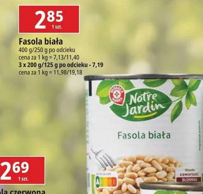 Cena produktu r贸偶ni si臋 w zale偶no艣ci od wybranego sklepu. Niestety nie posiadamy danych o aktualnych promocjach, jednak w艣r贸d archiwalnych ofert Fasola bia艂a Wiod膮ca marka notre jardin kosztuje od 1,99 z艂 do 2,89 z艂.