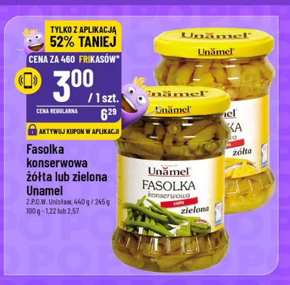 Cena produktu r贸偶ni si臋 w zale偶no艣ci od wybranego sklepu. Niestety nie posiadamy danych o aktualnych promocjach, jednak w艣r贸d archiwalnych ofert Fasola konserwowa 偶贸艂ta UNAMEL kosztuje od 3 z艂.