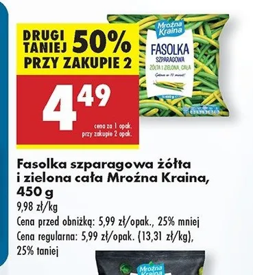 Cena produktu różni się w zależności od wybranego sklepu. Niestety nie posiadamy danych o aktualnych promocjach, jednak wśród archiwalnych ofert Fasolka szparagowa żółta Mroźna kraina kosztuje od 3,39 zł do 5,99 zł.