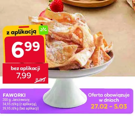 Zastanawiasz si臋, gdzie kupi膰 i ile kosztuje produkt Faworki Janczewscy? Regularnie sprawdzamy, czy jest promocja na ten produkt w Biedronka, Lidl, Kaufland, Auchan, Netto, Makro i innych sklepach. Aktualnie nie posiadamy ofert promocyjnych na ten produkt.