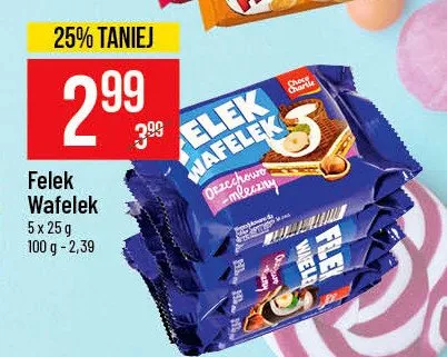 Cena produktu r贸偶ni si臋 w zale偶no艣ci od wybranego sklepu. Niestety nie posiadamy danych o aktualnych promocjach, jednak w艣r贸d archiwalnych ofert Felek wafelek orzechowo-mleczny Choco charlie kosztuje od 2,99 z艂.