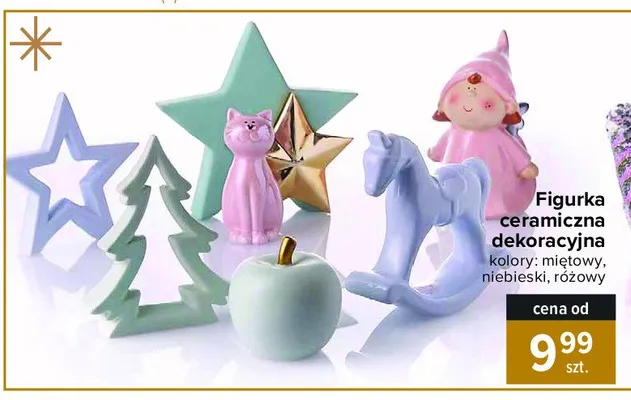 Cena produktu r贸偶ni si臋 w zale偶no艣ci od wybranego sklepu. Produkt Figurka ceramiczna mi臋towa mo偶esz kupi膰 w promocji ju偶 od 29,99 z艂 do 44,99 z艂. Najta艅sza oferta, jak膮 mamy w naszej bazie jest z sieci Bricomarche. Figurka ceramiczna mi臋towa kosztuje aktualnie 29,99 z艂. Zobacz ofert臋