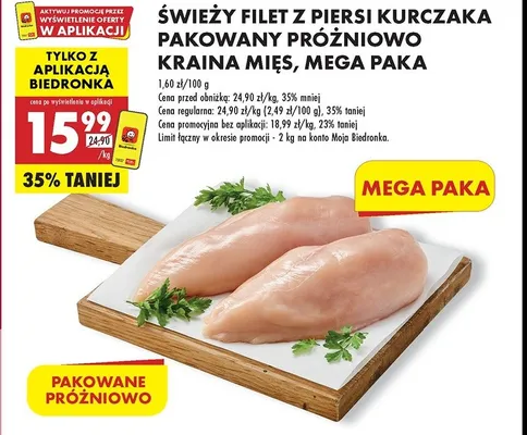 Zastanawiasz si臋, gdzie kupi膰 i ile kosztuje produkt Filet z piersi kurczaka Kraina mi臋s? Regularnie sprawdzamy, czy jest promocja na ten produkt w Biedronka, Lidl, Kaufland, Auchan, Netto, Makro i innych sklepach. Aktualnie posiadamy 1 ofert臋 promocyjn膮 na ten produkt. Ceny zaczynaj膮 si臋 od 14,99z艂!
