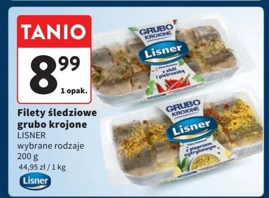 Gdzie mo偶na tanio kupi膰 produkt Filety 艣ledziowe grubo krojone z pietruszk膮 i kolorowym pieprzem Lisner?