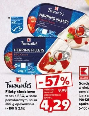 Filety 艣ledziowe w sosie pomidorowym K-classic favourites promocje w sklepach - znajd藕 ofert臋 dla siebie!