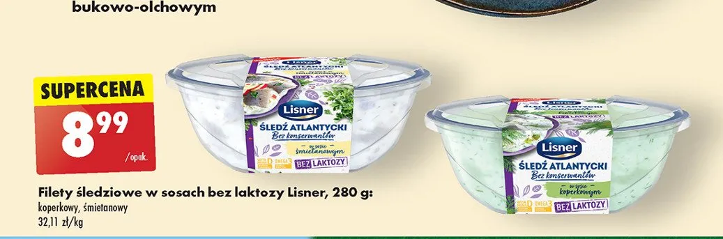 Przegl膮daj oferty promocyjne na produkt Filety 艣ledziowe w sosie 艣mietanowym bez laktozy Lisner