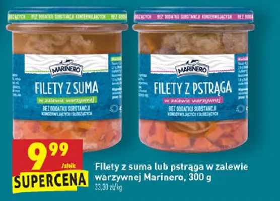 Gdzie mo偶na tanio kupi膰 produkt Filety z pstr膮ga w zalewie warzywnej Marinero?