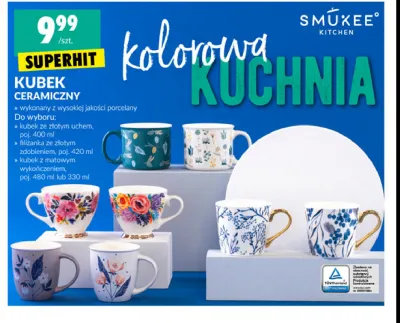Cena produktu różni się w zależności od wybranego sklepu. Niestety nie posiadamy danych o aktualnych promocjach, jednak wśród archiwalnych ofert Filiżanka ze złotym zdobieniem 420 ml Smukee kitchen kosztuje od 9,99 zł.