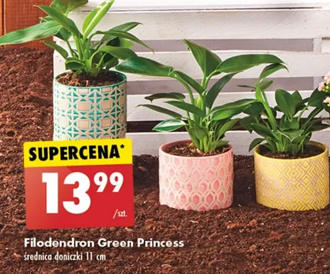Cena produktu r贸偶ni si臋 w zale偶no艣ci od wybranego sklepu. Niestety nie posiadamy danych o aktualnych promocjach, jednak w艣r贸d archiwalnych ofert Filodendron green princess kosztuje od 12,99 z艂 do 13,99 z艂.