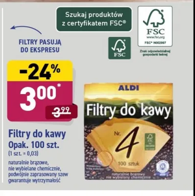 Ile kosztuje Filtry do kawy rozm. 4 Aldi?