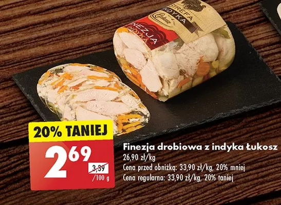 Cena produktu r贸偶ni si臋 w zale偶no艣ci od wybranego sklepu. Niestety nie posiadamy danych o aktualnych promocjach, jednak w艣r贸d archiwalnych ofert Finezja drobiowa 艁ukosz kosztuje od 26,9 z艂.