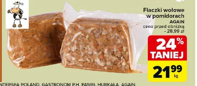 Przegl膮daj oferty promocyjne na produkt Flaczki wo艂owe w pomidorach AGAIN