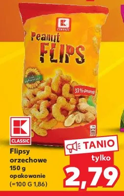 Cena produktu r贸偶ni si臋 w zale偶no艣ci od wybranego sklepu. Niestety nie posiadamy danych o aktualnych promocjach, jednak w艣r贸d archiwalnych ofert Flipsy orzechowe K-classic kosztuje od 2,79 z艂.