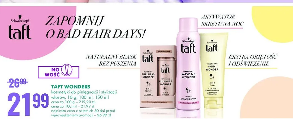 Przegl膮daj podobne oferty promocyjne do Fluid do wszystkich rodzaj贸w w艂os贸w Taft 4in1 wonder!