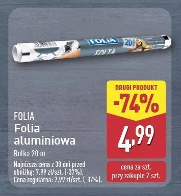 Zastanawiasz si臋, gdzie kupi膰 i ile kosztuje produkt Folia aluminiowa 20 m? Regularnie sprawdzamy, czy jest promocja na ten produkt w Biedronka, Lidl, Kaufland, Auchan, Netto, Makro i innych sklepach. Aktualnie posiadamy 1 ofert臋 promocyjn膮 na ten produkt. Ceny zaczynaj膮 si臋 od 4,79z艂!