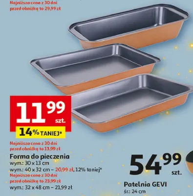 Cena produktu r贸偶ni si臋 w zale偶no艣ci od wybranego sklepu. Niestety nie posiadamy danych o aktualnych promocjach, jednak w艣r贸d archiwalnych ofert Forma do pieczenia 32 x 48 cm Actuel kosztuje od 21,99 z艂.