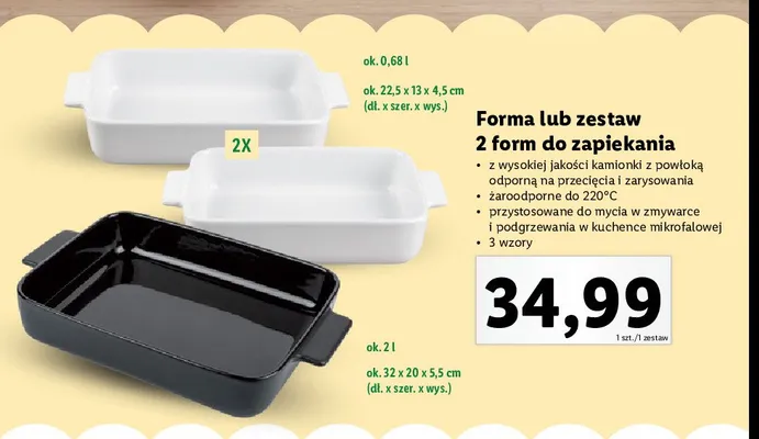 Zastanawiasz si臋, gdzie kupi膰 i ile kosztuje produkt Formy do pieczenia? Regularnie sprawdzamy, czy jest promocja na ten produkt w Biedronka, Lidl, Kaufland, Auchan, Netto, Makro i innych sklepach. Aktualnie nie posiadamy ofert promocyjnych na ten produkt.