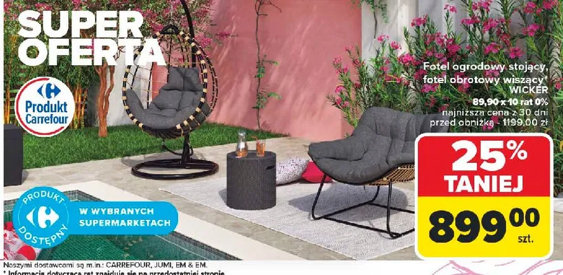 Nie wiesz gdzie kupi膰 produkt Fotel ogrodowy stoj膮cy WICKER w promocji? Aktualnie produkt Fotel ogrodowy stoj膮cy WICKER znajduje si臋 w atrakcyjnej cenie w sklepach Carrefour. Opr贸cz tego produkt mo偶na kupi膰 w innych sklepach, jednak aktulanie nie posiadamy informacji o promocjach w nich.