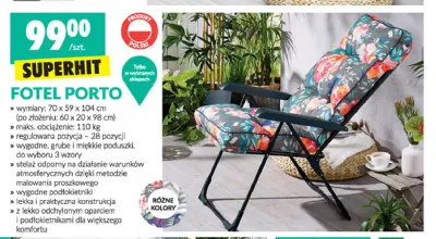 Cena produktu r贸偶ni si臋 w zale偶no艣ci od wybranego sklepu. Niestety nie posiadamy danych o aktualnych promocjach, jednak w艣r贸d archiwalnych ofert Fotel porto 70 x 59 x 104 cm Gardenic furniture kosztuje od 99 z艂.
