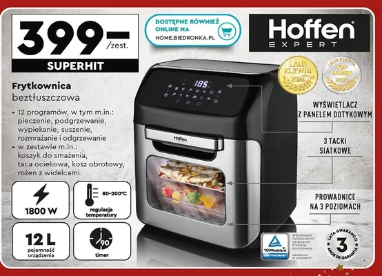 Zastanawiasz si臋, gdzie kupi膰 i ile kosztuje produkt Frytownica bezt艂uszczowa 1800w Hoffen? Regularnie sprawdzamy, czy jest promocja na ten produkt w Biedronka, Lidl, Kaufland, Auchan, Netto, Makro i innych sklepach. Aktualnie posiadamy 5 ofert promocyjnych na ten produkt. Ceny zaczynaj膮 si臋 od 89,00z艂!