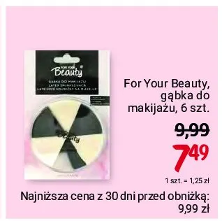 Cena produktu r贸偶ni si臋 w zale偶no艣ci od wybranego sklepu. Niestety nie posiadamy danych o aktualnych promocjach, jednak w艣r贸d archiwalnych ofert G膮bka do nak艂adania podk艂adu For your beauty kosztuje od 6,19 z艂 do 10,79 z艂.