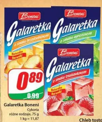 Cena produktu r贸偶ni si臋 w zale偶no艣ci od wybranego sklepu. Niestety nie posiadamy danych o aktualnych promocjach, jednak w艣r贸d archiwalnych ofert Galaretka brzoskwiniowa Boneni kosztuje od 0,79 z艂 do 0,89 z艂.